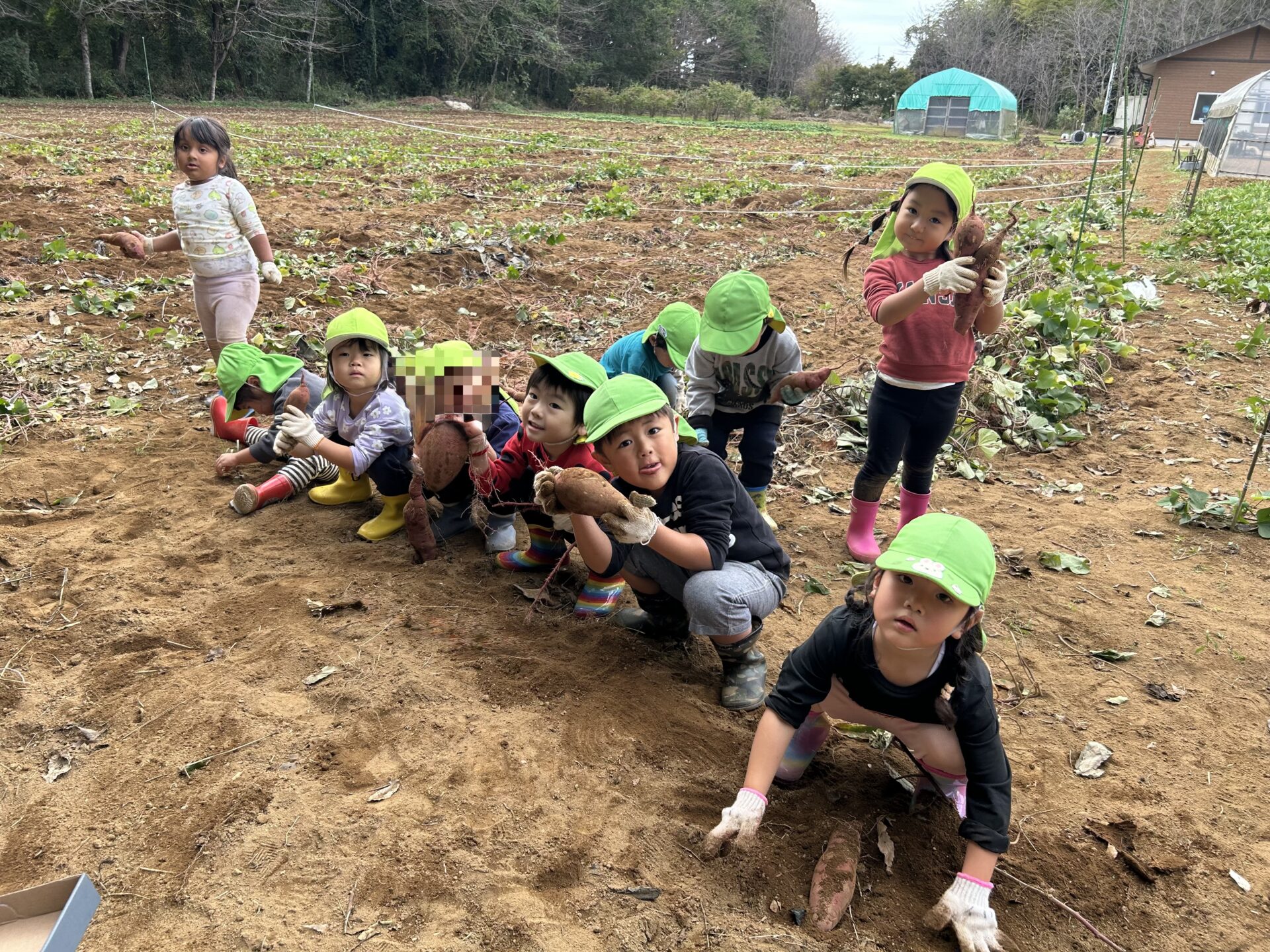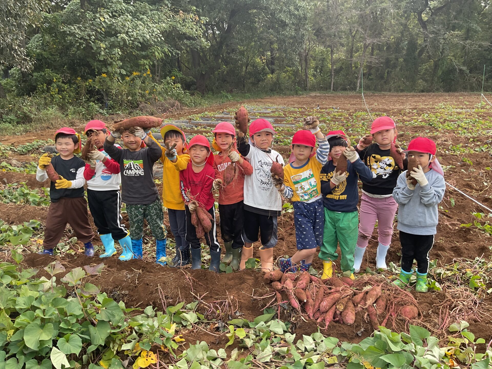 くじらチームは最初『大きいのを掘るぞ!!』と張り切っていましたが、おじさんにお芋は中くらいの方が美味しいと聞くと、真剣に美味しそうなさつまいもを探して頑張って掘っていました😊