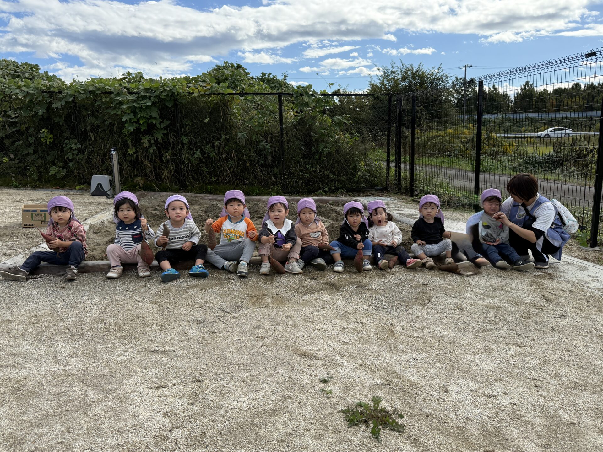 10月23日と24日にくじら・そら・にじがポケットファームどきどきにさつまいも堀りに行ってきました🍠後日に掘ってきたさつまいもを砂場に埋めてあめ・だいちチームでいも堀ごっこを楽しみました😊