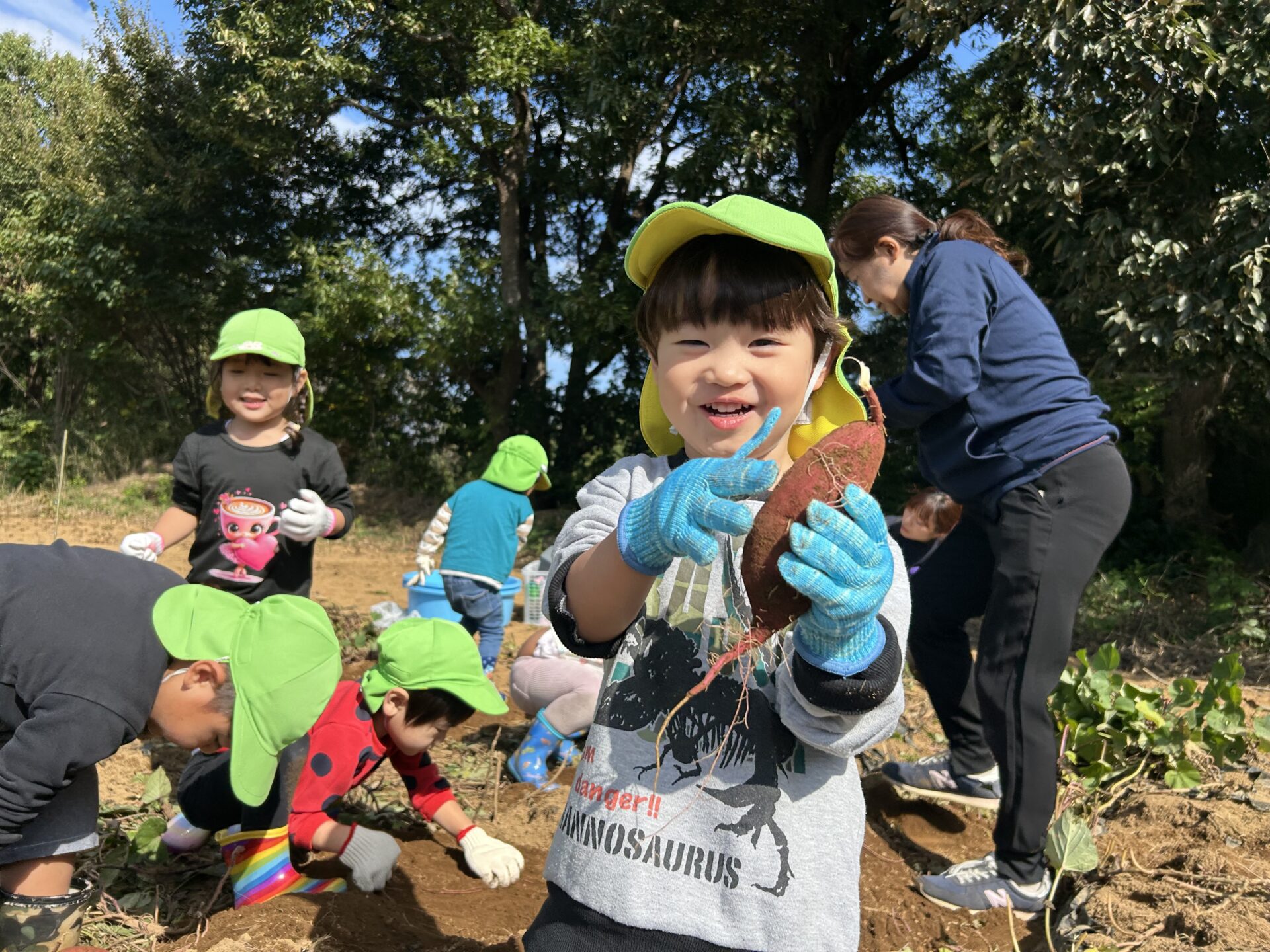 だいちチームさんも頑張って掘っていました!さつまいもを見つけると『あった!』とニコニコとしていました😊